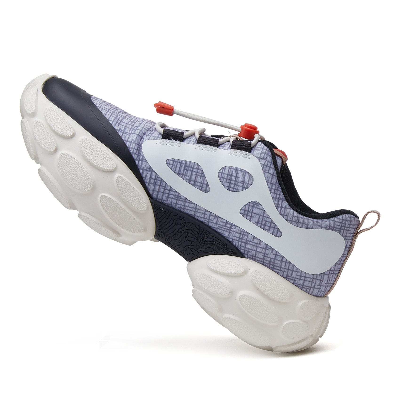 The separated tyre-shaped outsole is connected by a topography of Mulhacen peaks in TPU texture. The design of the outdoor functional outsole provides better cushioning and durability for mountain exploration scenarios.