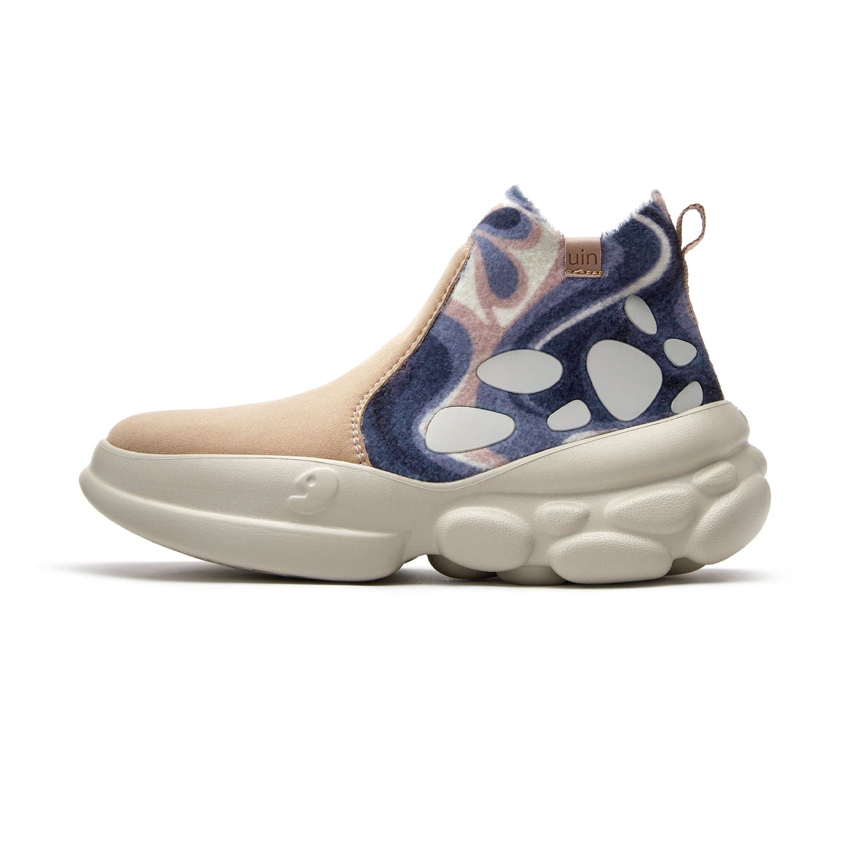 The front half of the shoe is made of microfiber suede, which is soft to the touch and more resistant to wear, with an outstanding sense of quality.The back of the shoe uses short plush knitted fabric, which is skin-friendly and soft. The dual-fabric mixed upper reflects uin's commitment to visual aesthetics and versatility in footwear design.