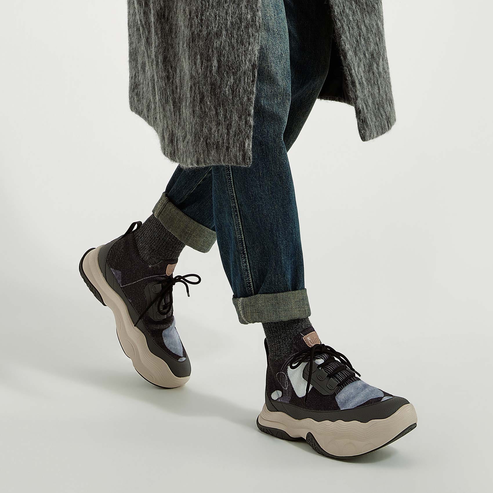 The topography of Catalonia, paired with the rubber material, forms a non-slip area on the sole. It has an excellent grip for walking. The EVA material is lightweight, soft, and stretchy for a comfortable fit.
