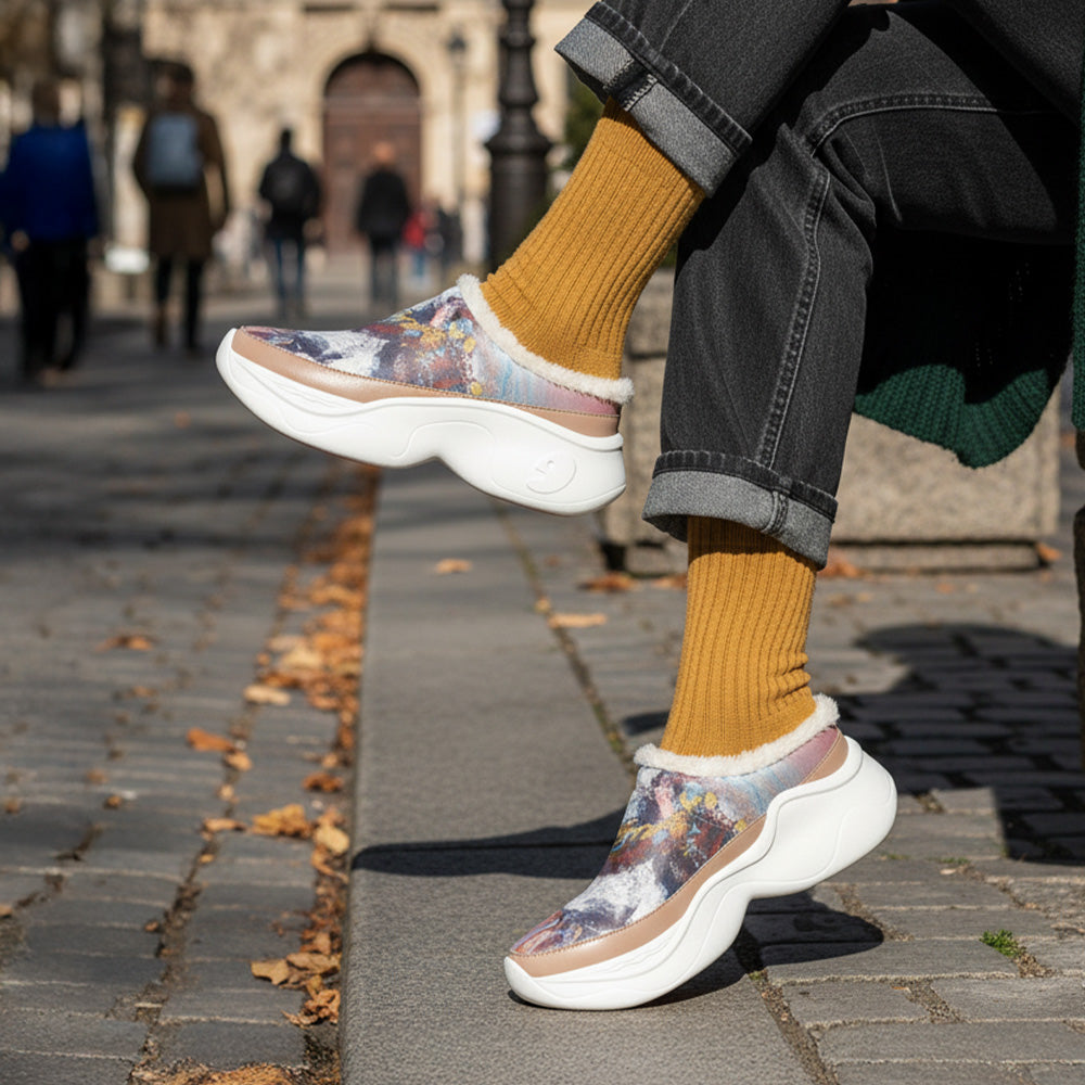 Thicken soft cashmere insole provides a warm and soft foot experience and can be worn both indoors and outdoors. The eye-catching pattern & fluff insole make you attractive on the road.