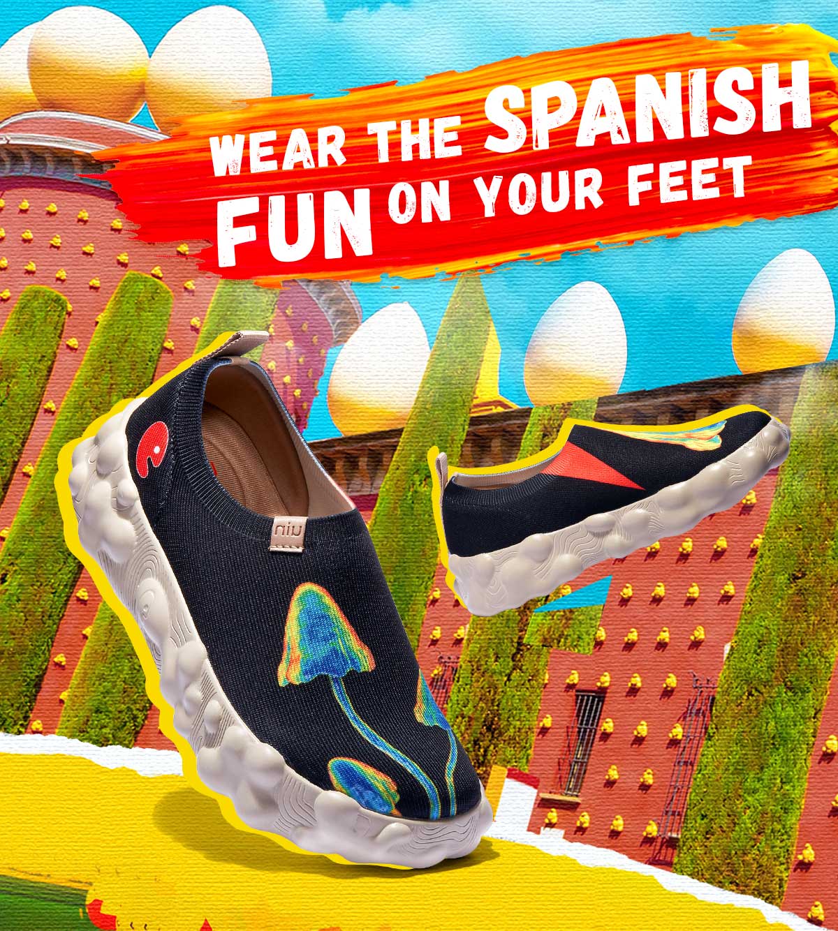The bubbles that pervade the shoe outsoles like a dream constitute its unique aura of surrealism, an innovative tribute to the talented Spanish artist Dalí. When you wear it and stroll in Figueras, it is like wandering in Dali's quirky and funny brain, which allows you to reap unique artistic inspiration.