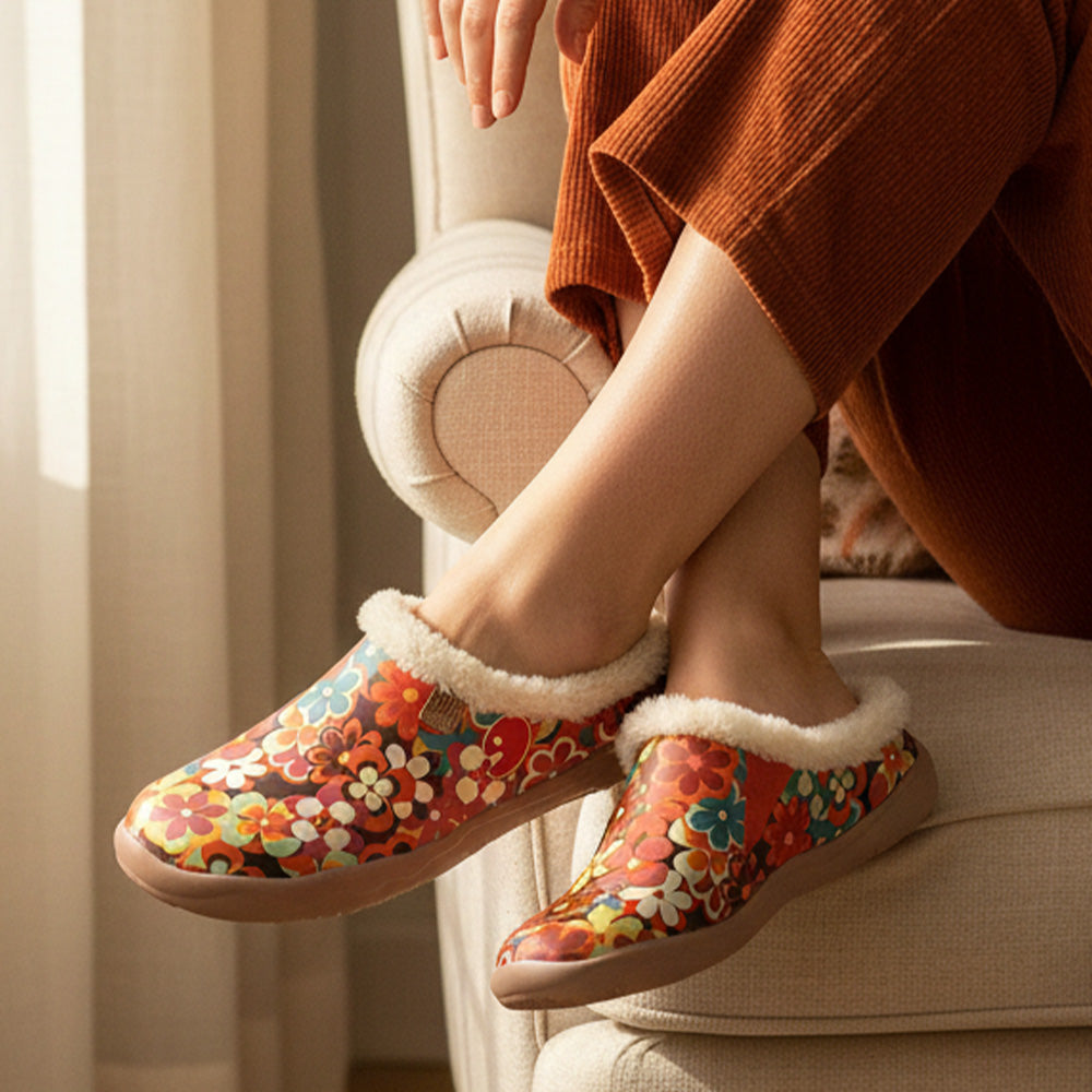 Soft and thick cashmere insole provides a warm and skin-friendly foot experience and can be worn both indoors and outdoors. The eye-catching pattern & fluffy insole make you attractive on the road.
