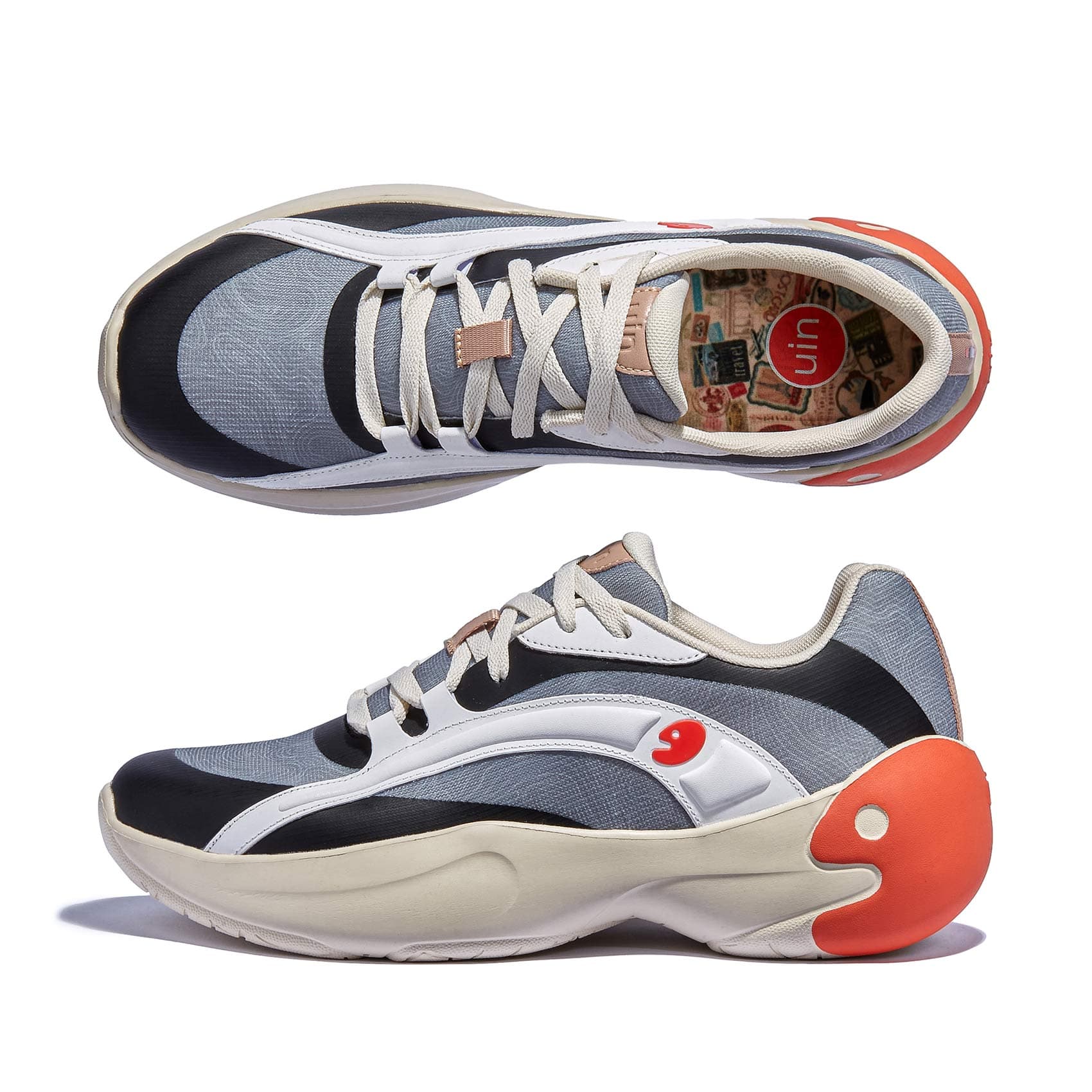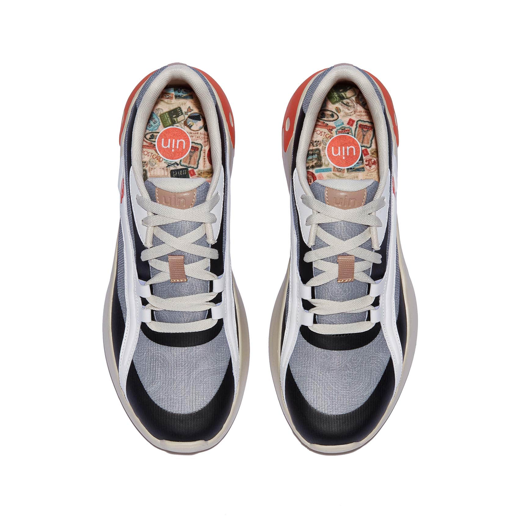 Smooth curves outline the hem for a sporty and visually cool sneaker look. The enlarged uin logo is covered on the heel of the shoe, reflecting uin's brand belief in pursuing stylish-sport-design and quality first. The whole design brings a vibrant style and a stable wearing experience to your travel.